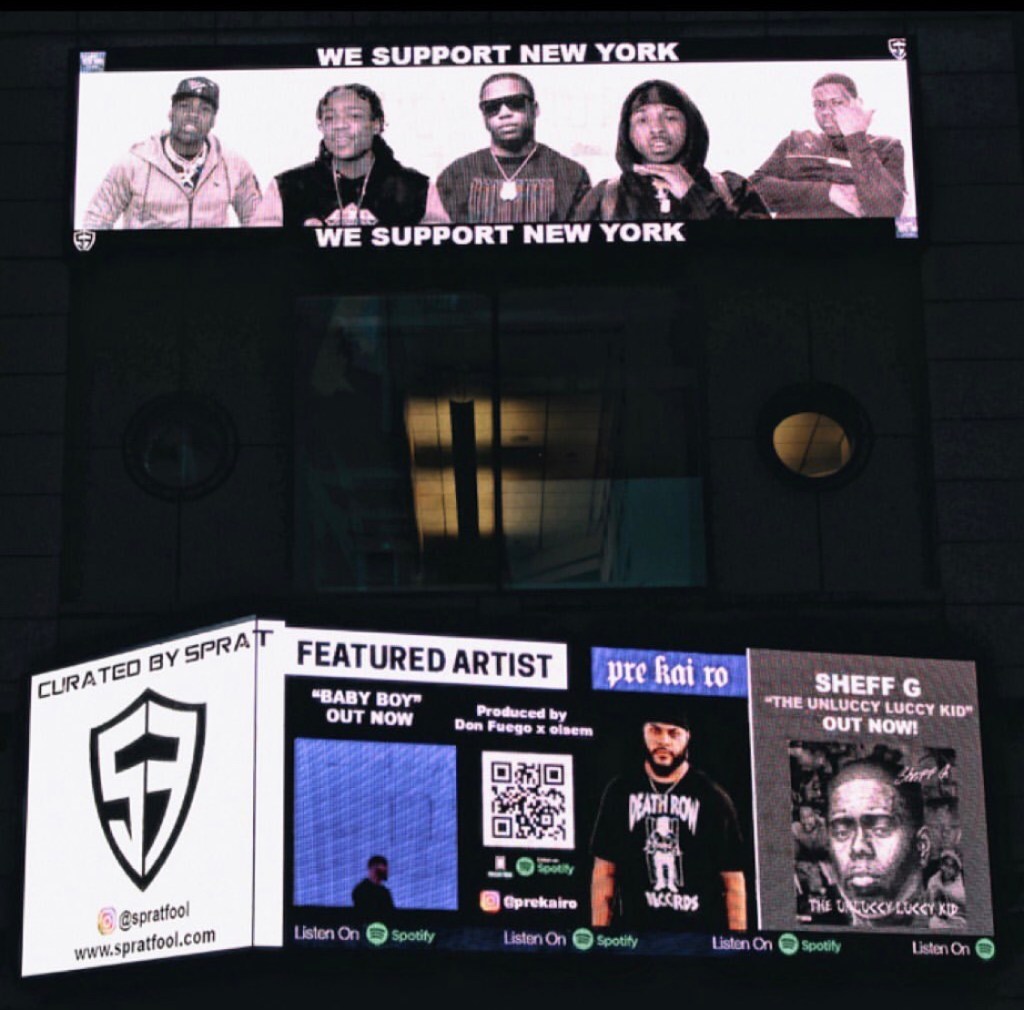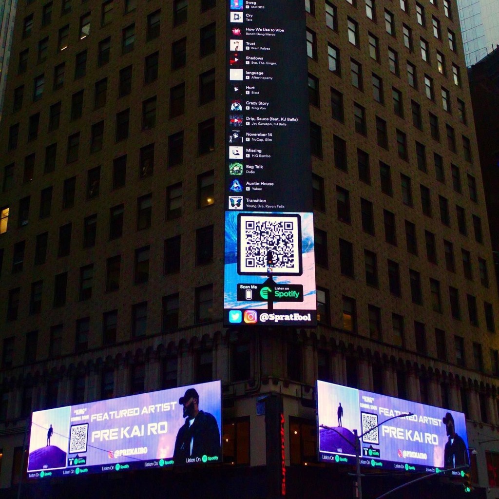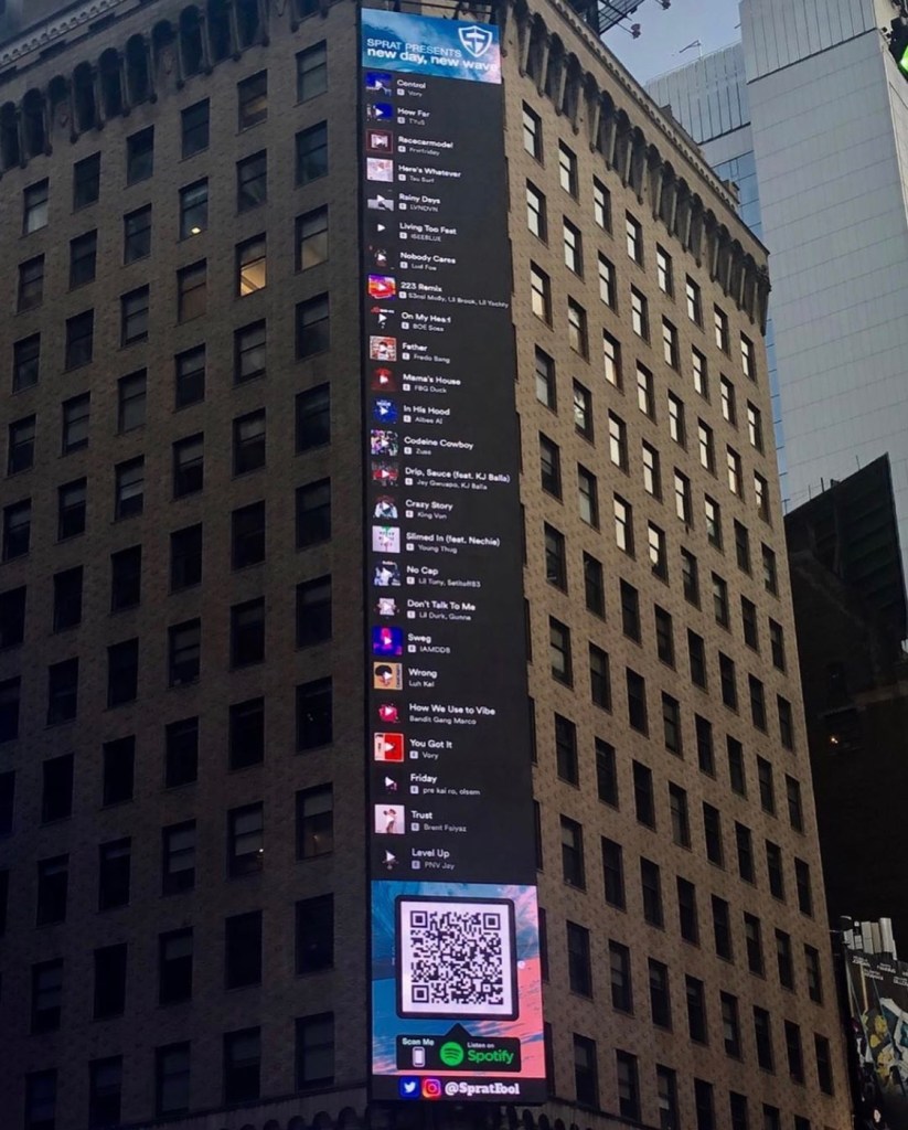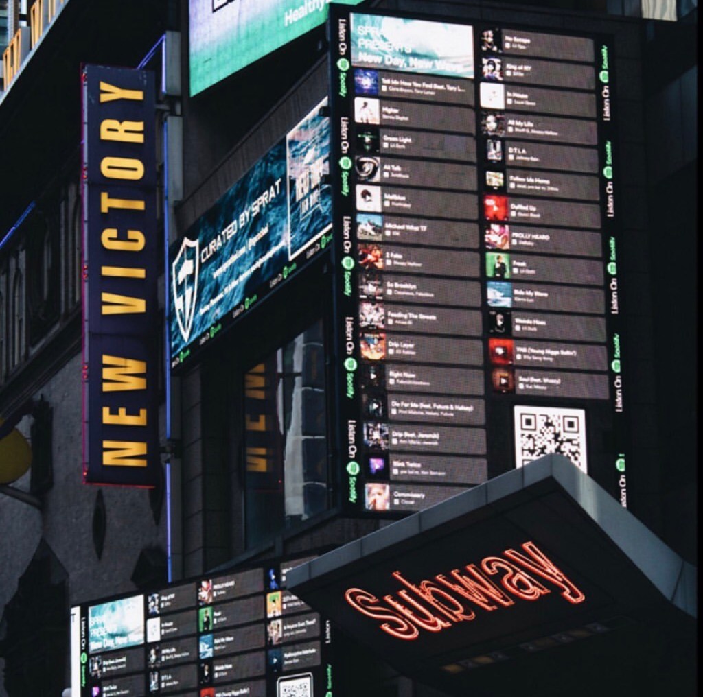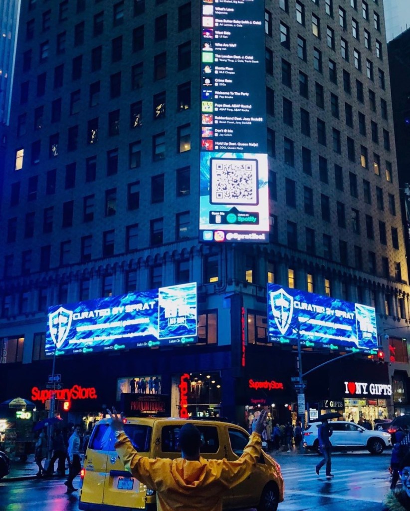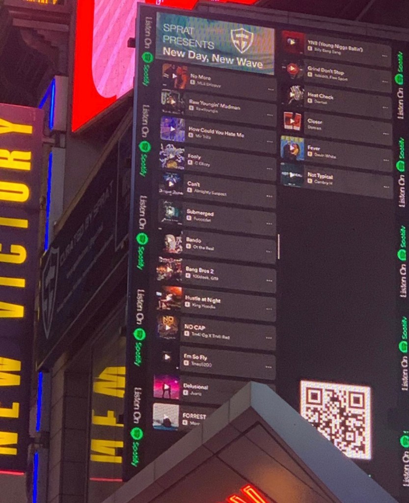 With the simple idea of taking a playlist to the next level, Mark Spratley AKA “SpratFool” has taken his Spotify playlist to the billboards. Instead of creating an ordinary playlist, Spratley decided to take his savvy marketing concepts to the next level by adding his “New Day, New Wave” playlist to a live billboard in Times Square, New York City. Now you can catch his coveted and highly curated playlist up high in the New York City lights, showcasing new music from countless artists bi-weekly.